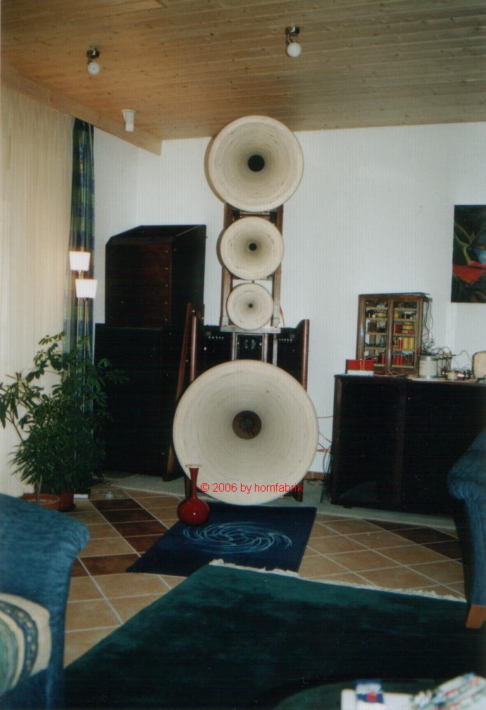 Modularität Alle Hornsysteme der Hornfabrik stellen einen optimalen Kompromiss aus neutralem, unverfärbtem Klang und möglichst hohem Wirkungsgrad dar. Dazu werden die Hörner auf ihr Einsatzspektrum und die Kombination mit Treiber und Frequenzweiche optimiert. Diese Vorgehensweise führt bei entsprechender Forderung nach höchster Klangqualität zu Mehrwegesystemen. Dazu sind grundsätzlich alle Systeme erweiterbar, ohne dass teure Bauteile „übrigbleiben“. Ausgehend vom Individualprogramm lässt sich jeder Hornlautsprecher zum (sehr) großen (Vollhorn-) System entwickeln. Große Hornlautsprecher werden immer individuell entwickelt. Nahezu allen Forderungen kann Rechnung getragen werden (Wohnraum, Designwünsche, Lautsprecherchassis usw.) - so lange wir nicht die Physik neu erfinden müssen. Dadurch wird eine Preisliste für die Vollhornsysteme unmöglich. Lassen Sie sich bei Bedarf ein unverbindliches Angebot erstellen. Selbstverständlich beraten wir vor, bei und nach der Aufstellung der Systeme zur Raumakustik, um den „Wahnsinn“ großer Systeme auch vollständig ausnützen zu können. Alle Systeme oberhalb der Grundsysteme des Individualprogramms werden grundsätzlich von der Hornfabrik innerhalb Deutschlands und das angrenzende Ausland kostenfrei geliefert und aufgestellt. Die beispielhafte Darstellung des modularen Ausbaus finden Sie: |