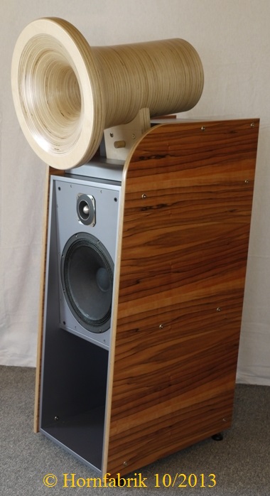 Die Wild One II ist eine Folgeentwicklung der bisherigen Wild One. Ziel war die Verbesserung der äußeren (Design) wie der inneren Werte (Klang) für die Dreiwegekonstruktion. Ein größeres Mitteltonhorn (Durchmesser 54 cm) mit einem für die Hornfabrik hergestellten Treiber erlaubt eine tiefere Ankopplung an den Baß für eine noch schnellere Mittenwiedergabe. Der Druckkammertreiber bietet eine extrem impulsive und trotzdem harmonische Klangqualität im reinen Mitteltonbereich.Im Baßhorn arbeitet ein16“-Baß mit extrem leichter Papier-Membran und dem notwendig starken Antrieb. Für eine satte Baßwiedergabe sollte die Verstärkerleistung fünf Watt nicht unterschreiten.Für den Hochtonbereich wird ein feines Hochtonhorn mit verstärktem Antrieb eingesetzt.Der Wirkungsgrad beträgt 98 dB/W/m. Hoch- und Mittelton sind pegelbar, die Baßbedämpfung und damit die Baßankopplung an der Hörraum ist anpaßbar. Die Wild One II hat die Fähigkeit, den Hörer durch die „live“-haftige Wiedergabe nicht mehr los zu lassen. Lässig und locker geht´s ans Werk. Man kann unangestrengt laut hören, aber auch ganz, ganz leise, weil ein Hornsystem so spielerisch mit der Musik umgeht. Gesamthöhe: 175 cm |